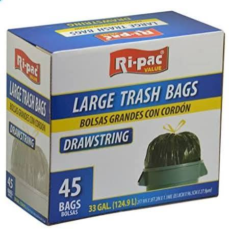 RI-PAC TRASH BAG W/ DRAWSTRING 4/33GAL/45CT